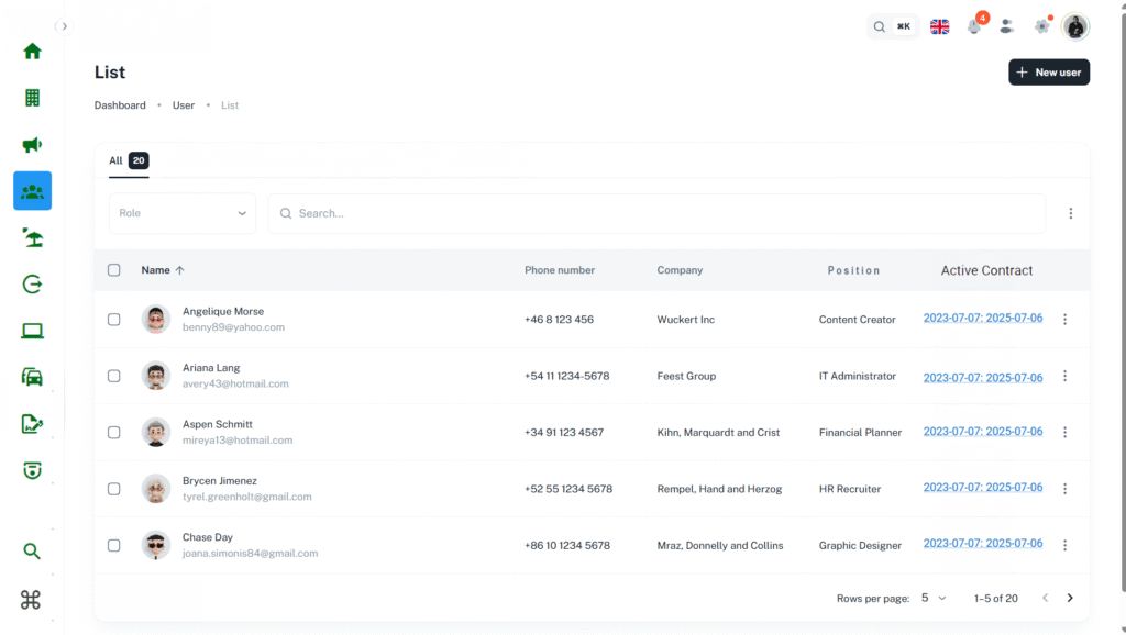 Human Resources (attendance, GPS tracking, contracts, and employee shifts)